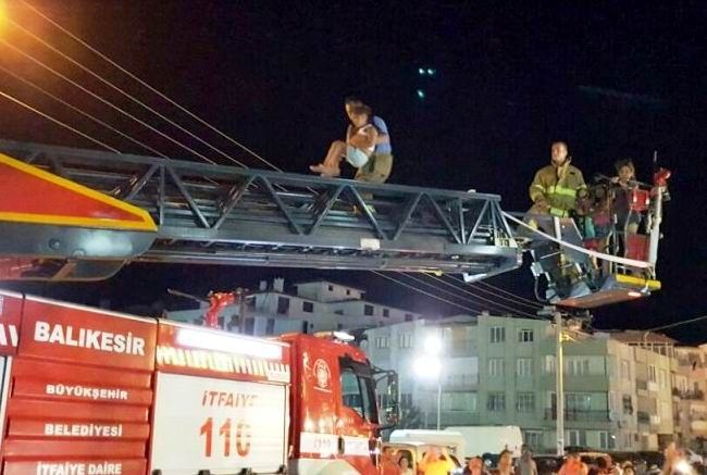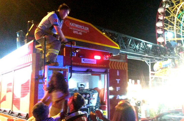 Sarımsaklı’daki lunaparka çok kısa sürede ulaşan bir merdivenli arazöz minikleri uzattığı merdiven sayesinde çocuklar yere indirildi.