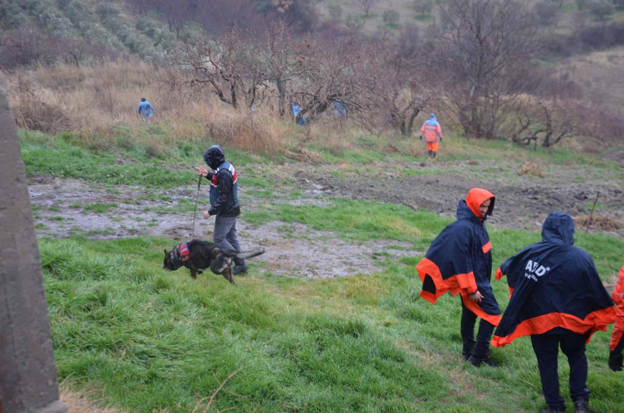Arama çalışmalarına iz takip ve kadavra köpekleri de dahil edilirken, ekipler belirlenen noktalarda hassas tarama yapıyor. Zorlu arazi şartları, sağanak ve fırtınaya rağmen çalışmalarını sürdüren ekipler; bağ evleri, dere yatakları, tarım arazileri ve ormanlık alanlarda bir iz arıyor.