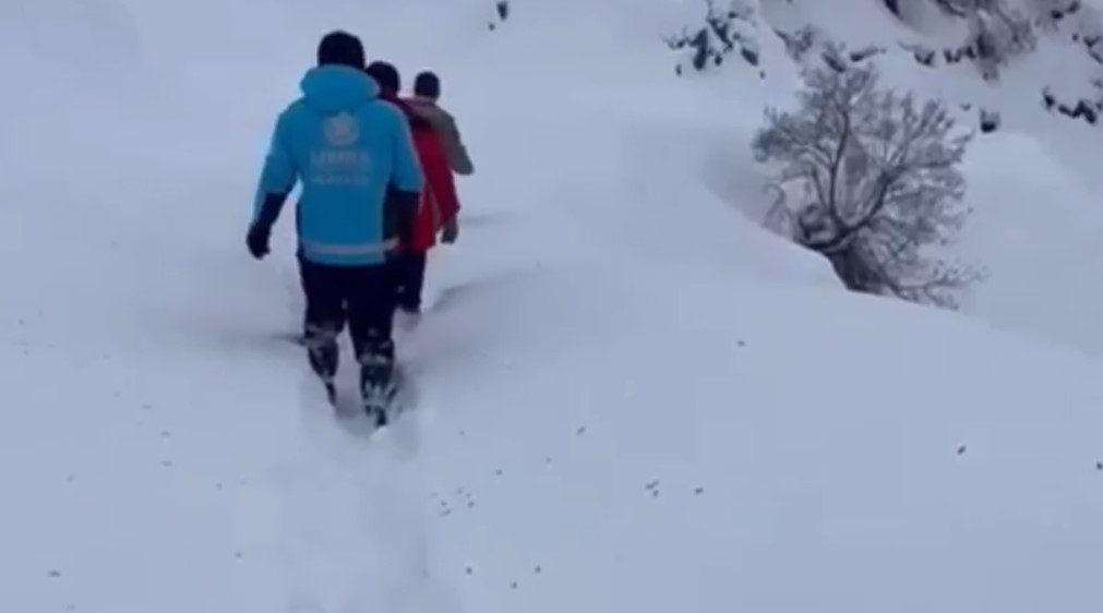 Diyabetli çocuk, kar yağışı ve çığ riskinin bulunduğu köyden alınıp hastaneye ulaştırıldı