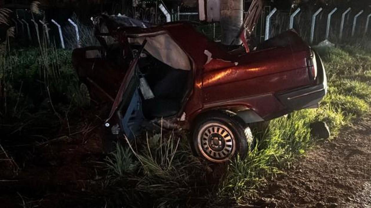 Savrulan otomobil, yol kenarında bulunan beton direğe çarparak demir yığını haline dönüştü.