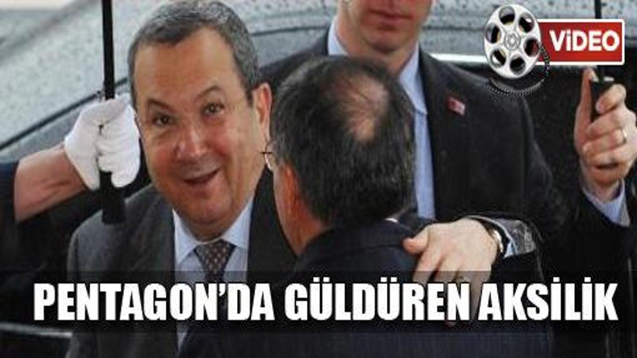 Görüşmenin gerçekleşeceği Pentagon binasının önünde, merdivenlerde Barak'ı karşılamak için kuvvetli yağmur altında bekleyen Panetta, mevkidaşının geldiği limuzinden bir türlü inmemesi üzerine kahkahalarla gülmeye başladı.