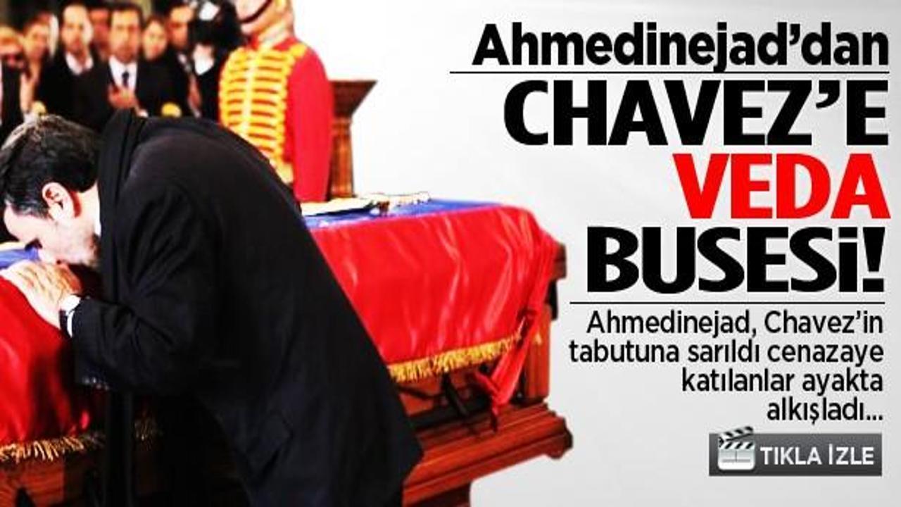Törende, devlet başkanları tek tek takdim edilerek sırayla naaşın yanına geldi. İsmi okunduğunda halkın en fazla alkışladığı kişilerden biri Ahmedinejad oldu. Ahmedinejad, Chavez'in naaşını öptükten sonra yumruğunu havaya kaldırdı. Ahmedinejad'ın yerine döndüğünde de gözyaşlarını sildiği görüldü.