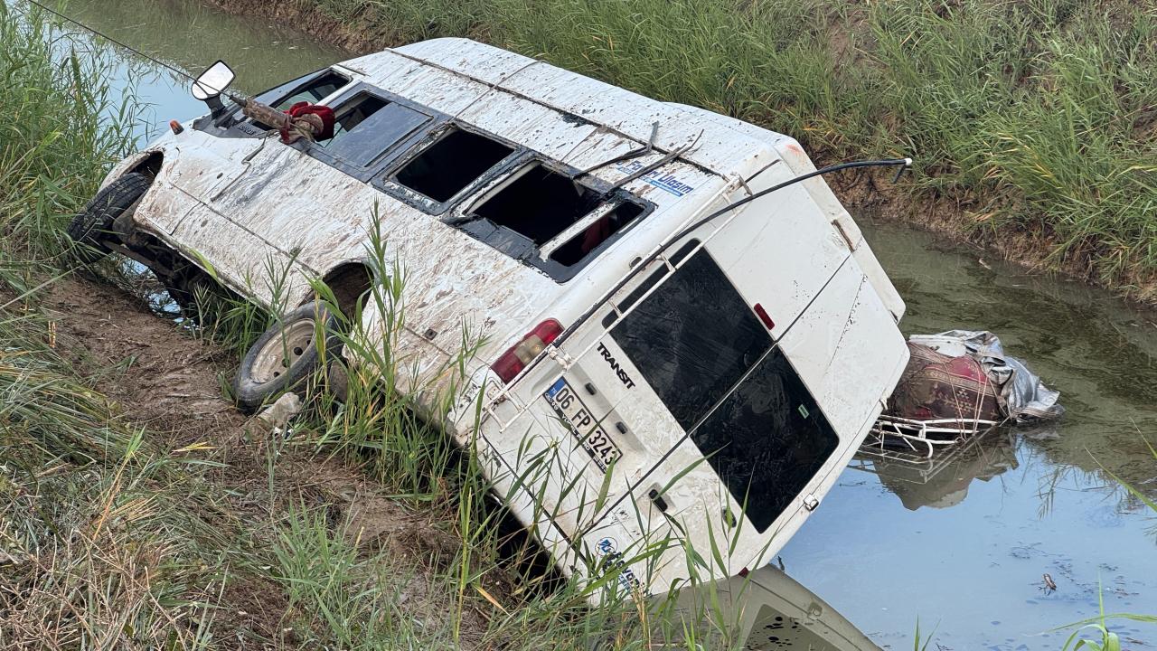 Tarım işçilerini taşıyan minibüs, sulama kanalına devrildi; 18 yaralı