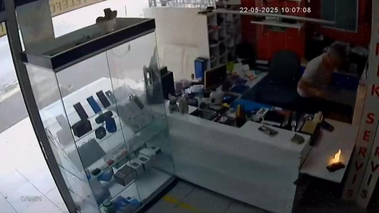 Güvenlik kamerasına yansıyan görüntülerde, çalışanın patlama sesiyle önce korktuğu daha sonra ise telefonu eliyle uzaklaştırmaya çalıştığı görüldü.