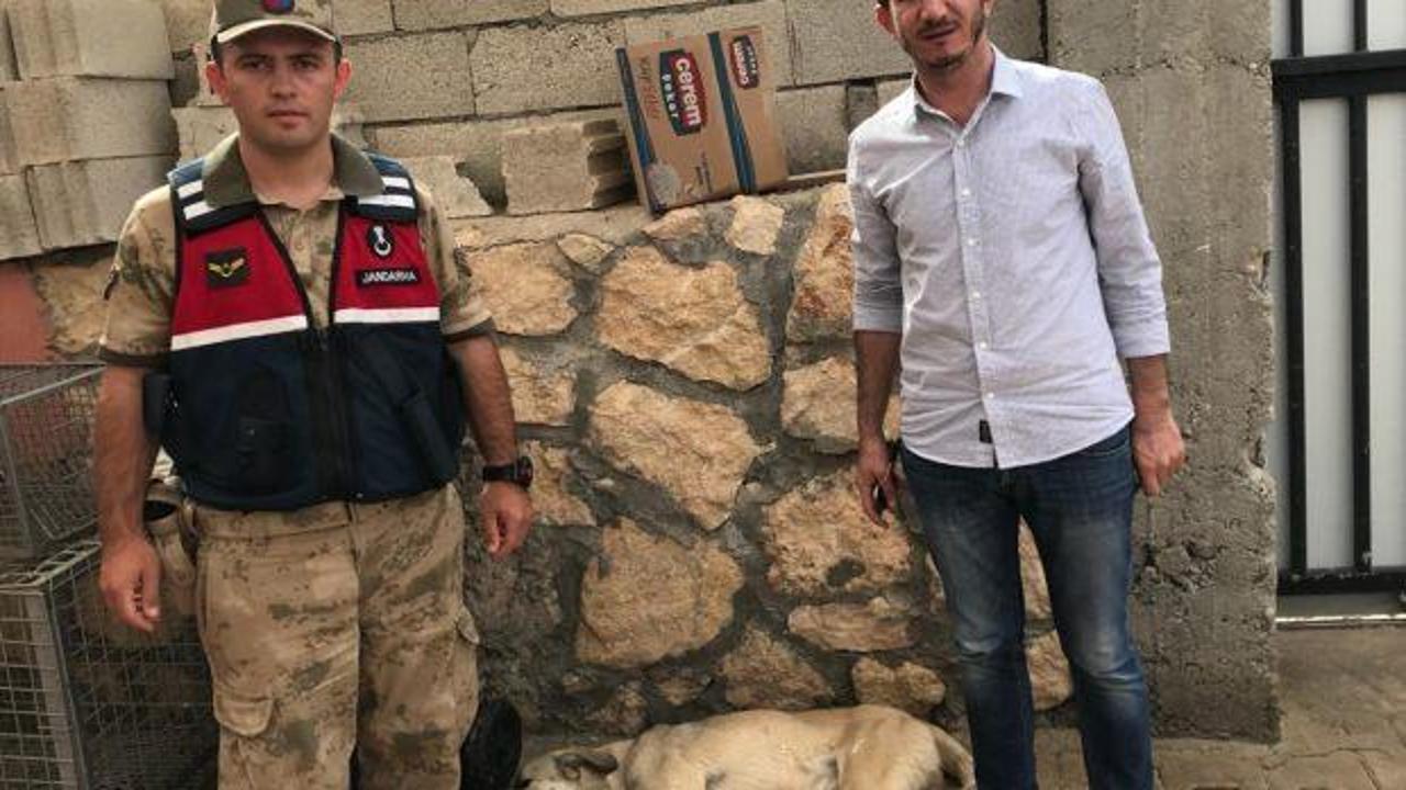 Adıyaman'ın Besni ilçesinde yaralı sokak köpeğine jandarma ekibi sahip çıktı.
