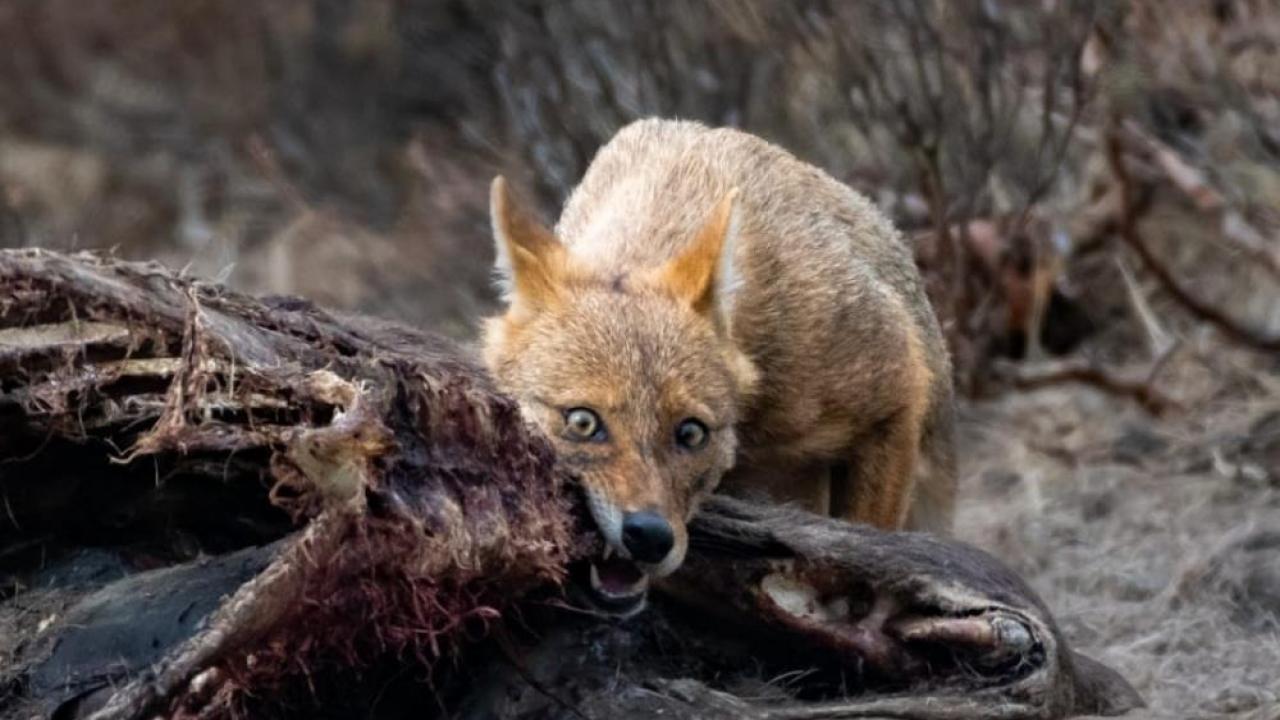 Afyonkarahisar'da bir çakalın, geyiği parçaladığı anlara ait fotoğraflar büyük ilgi gördü.
