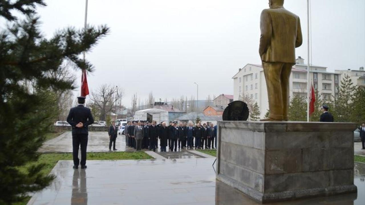Tören, İlçe Meydanı'nda saygı duruşu, İstiklal Marşı'nın okunması ve İlçe Emniyet Amiri Ogün Evci'nin Atatürk Anıtı'na çelenk sunulmasıyla başladı.