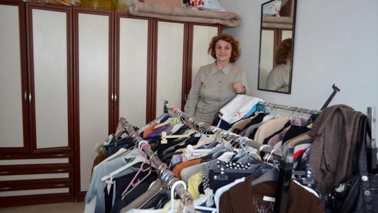 ABONE OLDernek binasında kurulan hayır mağazasına gelen ihtiyaç sahipleri, burada dernek gönüllülerinin yardımıyla kendilerine uygun kıyafetleri seçiyor.