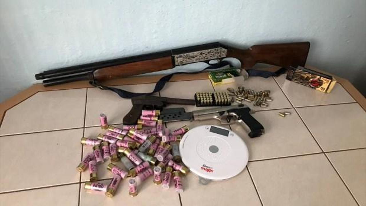Şüphelilerin ev ve iş yerlerinde yapılan aramalarda, 60 gram esrar, 85 uyuşturucu hap, 49 gram bonzai, 4 av tüfeği, 4 kuru sıkı tabanca, ruhsatsız tabanca, uyuşturucu satışında kullanılan aletler ele geçirildi.