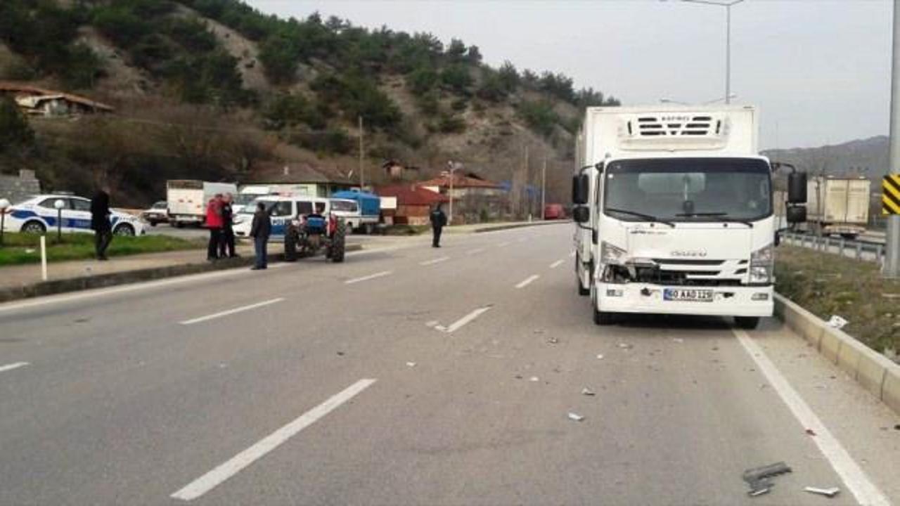 Amasya'dan Taşova'ya giden Mert Erol (25) idaresindeki 60 AAD plakalı kamyonet, Yeni Mahalle mevkisinde Mehmet Cingöz'ün (69) kullandığı 05 HC 253 plakalı traktörle çarpıştı.