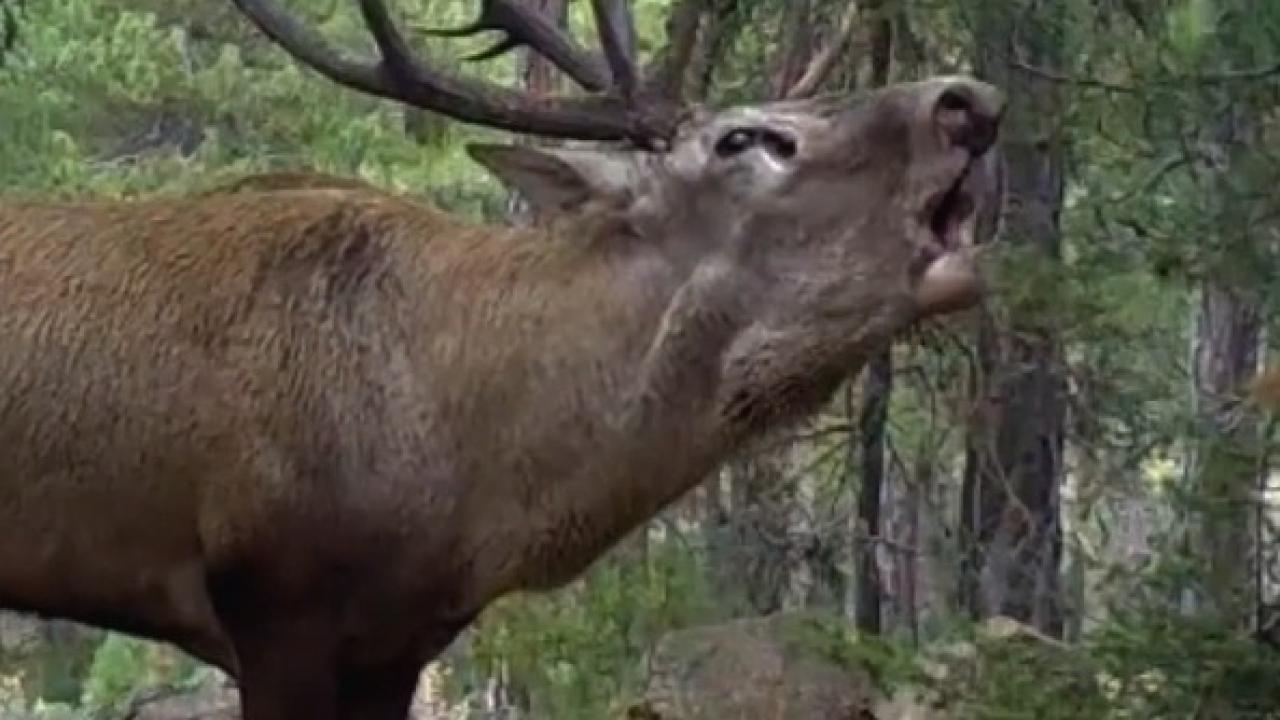İri cüssesi, uzun boynuzları ile görüntülenen geyiğin, gür sesi de fotokapan tarafından kaydedildi.