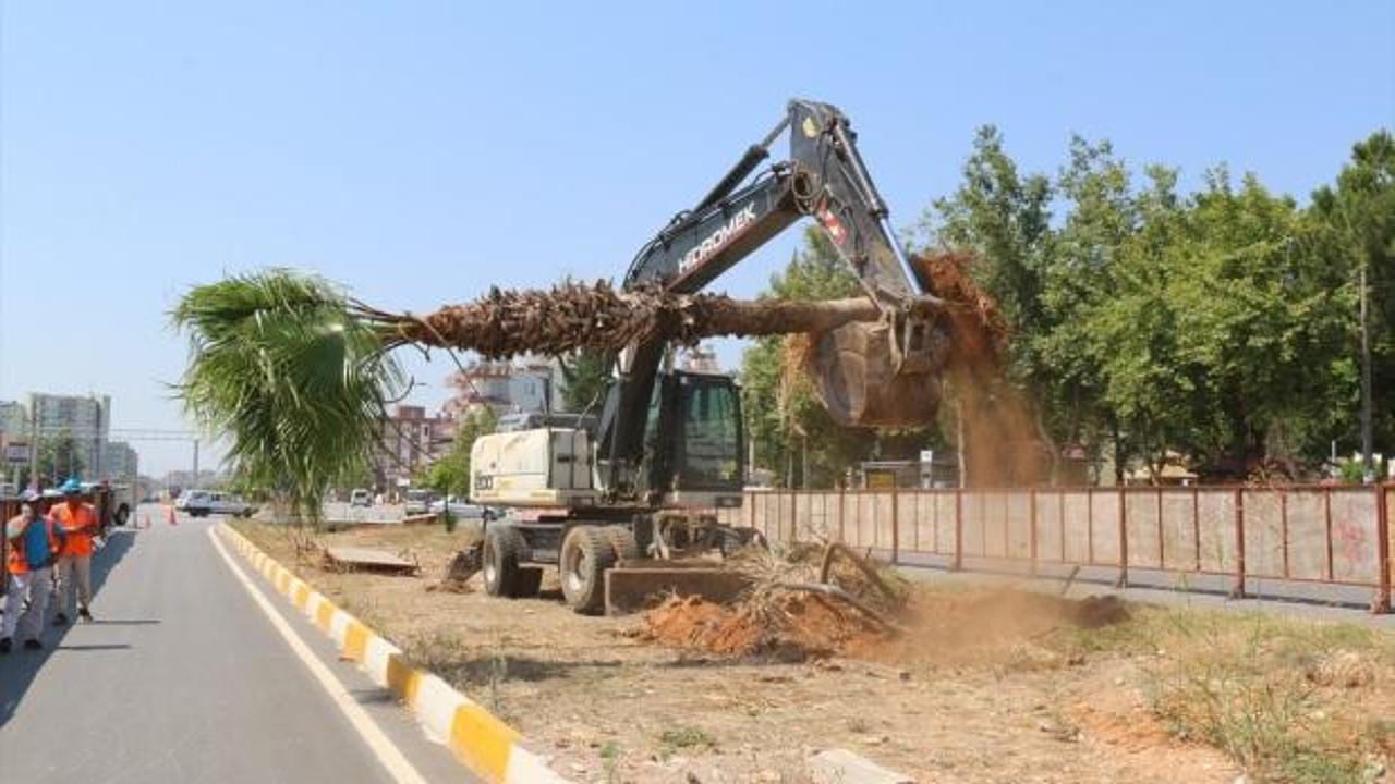 Antalya Büyükşehir Belediyesi, Varsak-Zerdalilik 3. Etap Raylı Sistem çalışmaları kapsamında, güzergah üzerindeki ağaçları zarar vermeden söküyor.