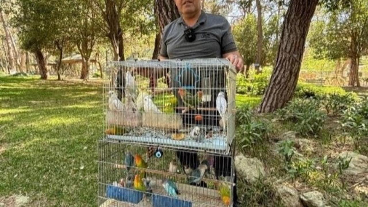 Antalya’da yapılan denetimde, fatura belgesi ve ayaklarında bilezik olmayan 8 adet Sultan papağanı ve 33 adet Cennet papağa el konuldu.