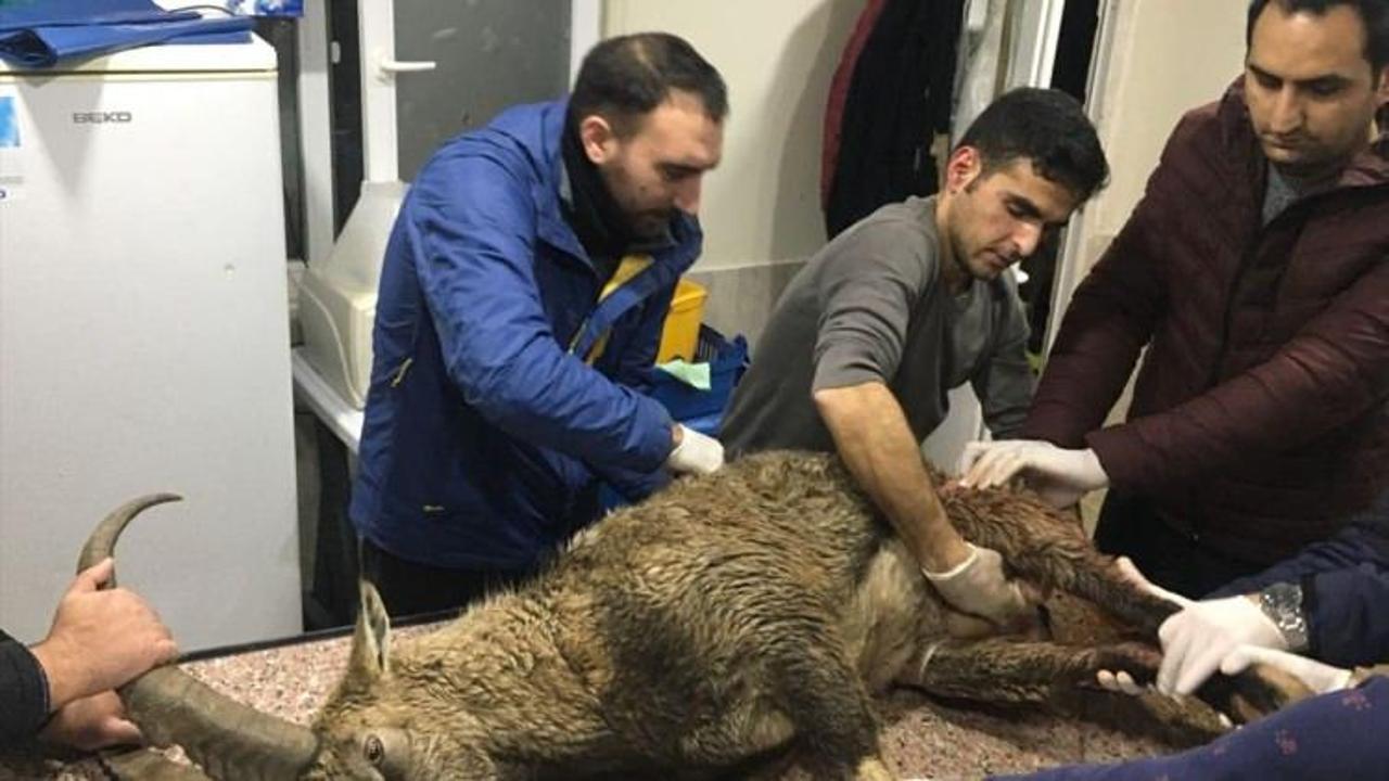 Yaralı dağ keçisi tedavi için Kars'a gönderildi