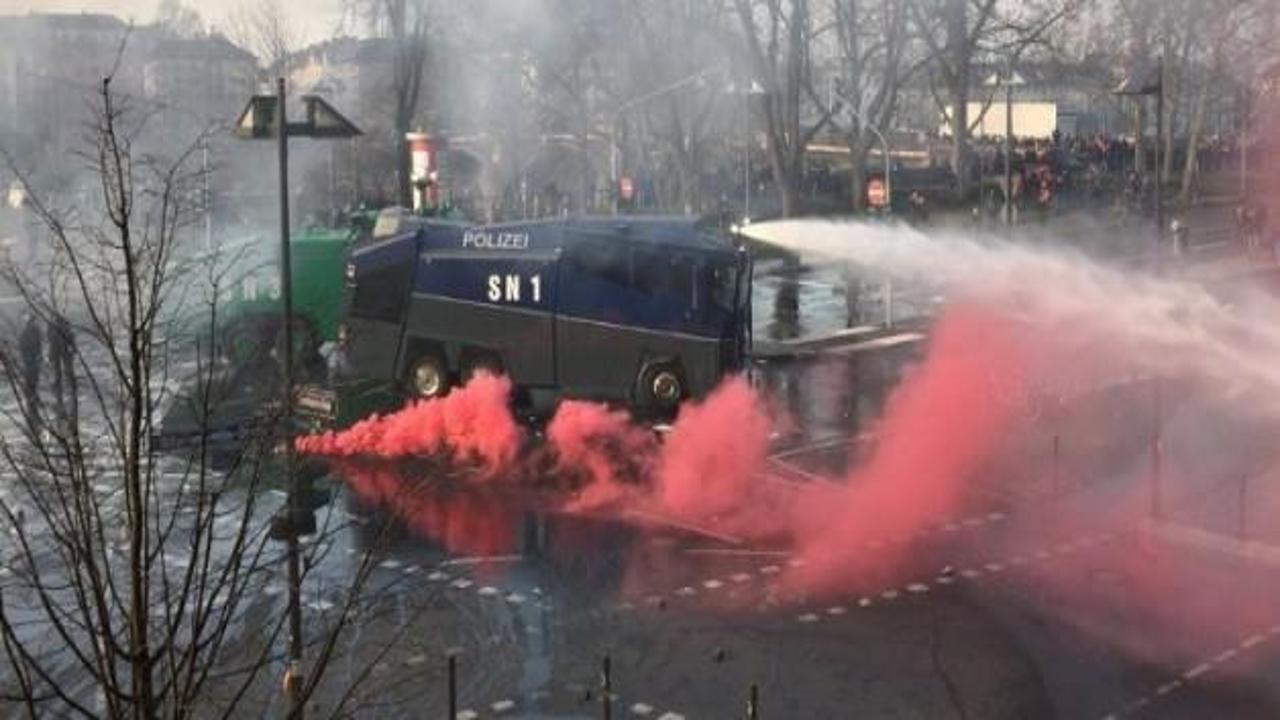 Almanya'da göstericileri dağıtmak isteyen polis, son teknoloji TOMA'larla müdahale ediyor.