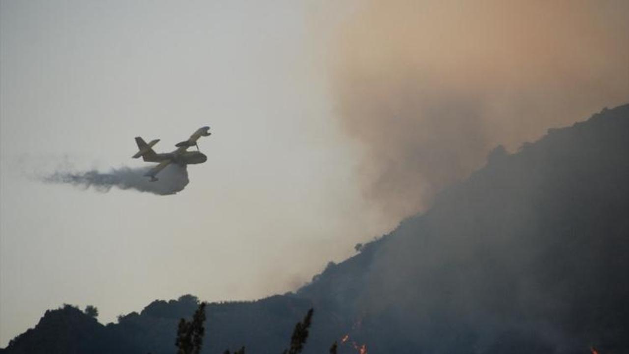 Aydın'ın İncirliova ilçesinde makilik alanda çıkan yangına hava ve karadan müdahale ediliyor.