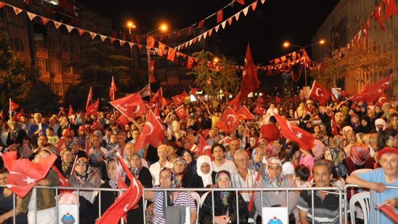 Türk bayraklarıyla meydanı dolduran vatandaşlar, darbe karşıtı sloganlar attı ve şehit düşenlere dua etti. Vatandaşlar gecenin ilerleyen saatlerine kadar çalınan müzikler, marşlar eşliğinde eğlendi.