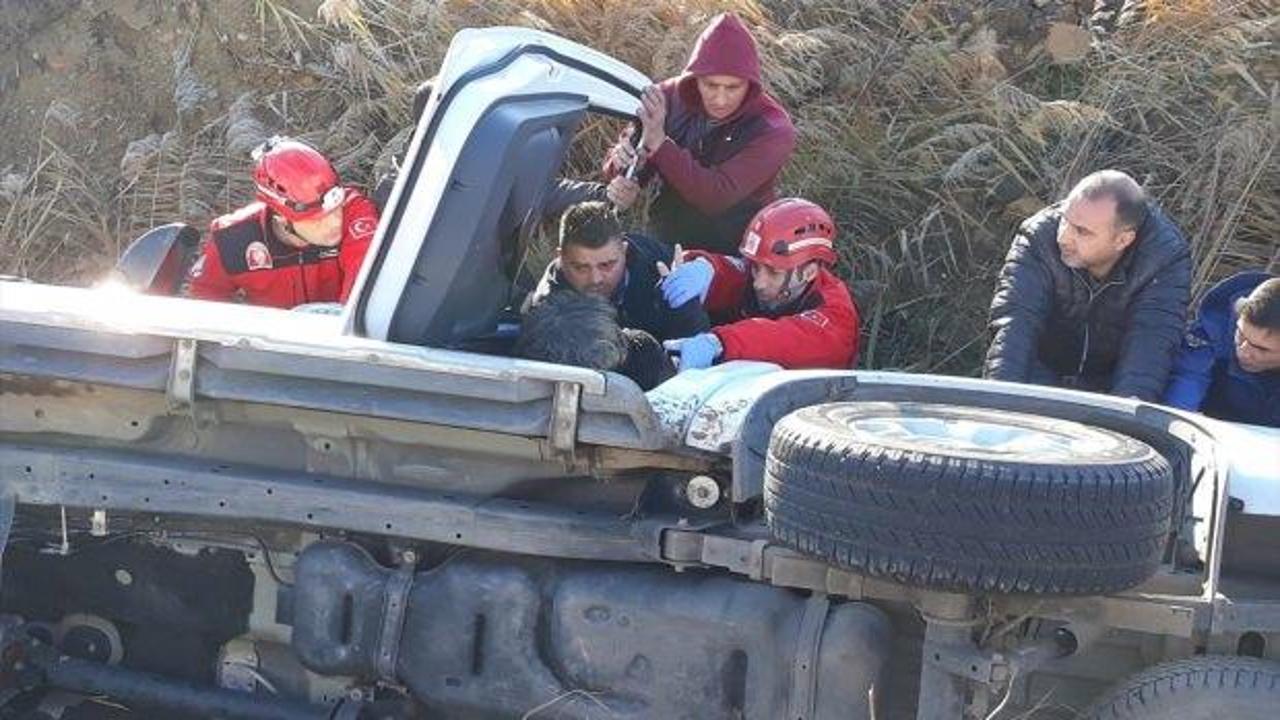 Ters dönen araçta sıkışan sürücü ile Hamiyet Saltık, Özlem ve Ayfer Uğurer, itfaiye ekipleri tarafından kurtarıldı.