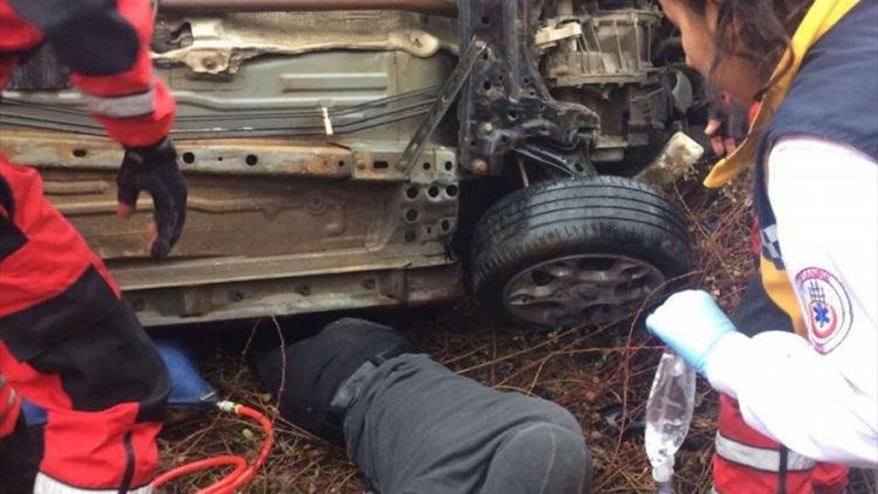 Takla atan otomobilin altında kalan Çelik'e, sağlık ekipleri müdahale etti. Sürücü Çelik, itfaiye ekiplerince bulunduğu yerden çıkarıldı.