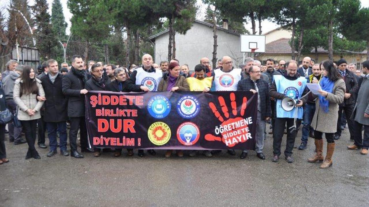 Açıklamanın ardından alkışlarla "Eğitimde şiddet istemiyoruz" sloganı atan grup, daha sonra dağıldı.