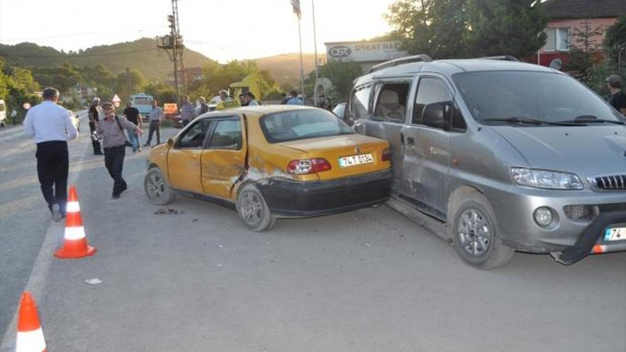 Alınan bilgiye göre, Bartın-İnkumu karayolu Gürgenpınarı mevkisinde, İnkumu istikametine seyreden Hasan Ozan idaresindeki 74 BG 707 plakalı minibüs, karşı yönden gelen 74 T 0134 plakalı Ahmet Demir (61) yönetimindeki taksiyle çarpıştı.