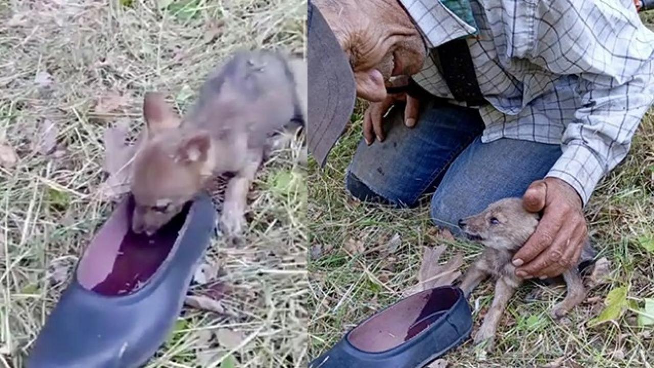 Ülkenin vicdanlı emmisi: Yavru çakala ayakkabısıyla su içirdi