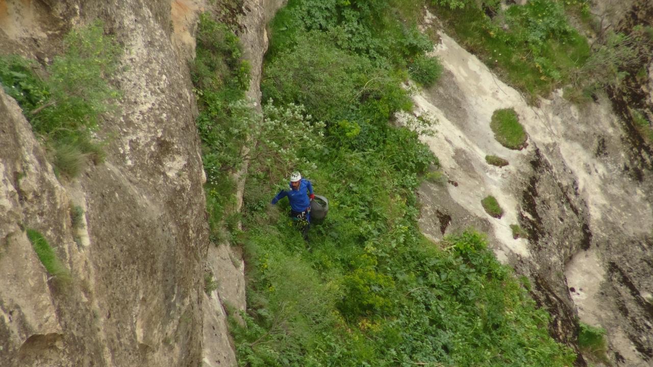 Kentte beden eğitimi öğretmeni olarak çalışan Yalçın Yıldız, Hasankeyf ilçesine bağlı Suçeken köyü civarında halat yardımıyla 400 metre uzunluktaki kayalıklardan inerek "yılan otu" topladı.