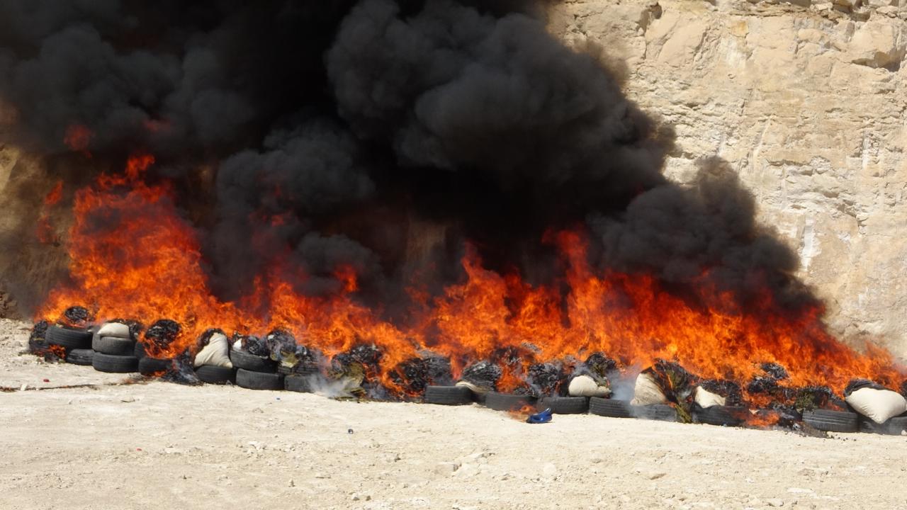 Ele geçirilen milyonlarca değerindeki uyuşturucular, yasal süreçlerin tamamlanmasının ardında, ilgili kurumların gözetiminde imha alanına götürülüp yakılarak imha edildi.