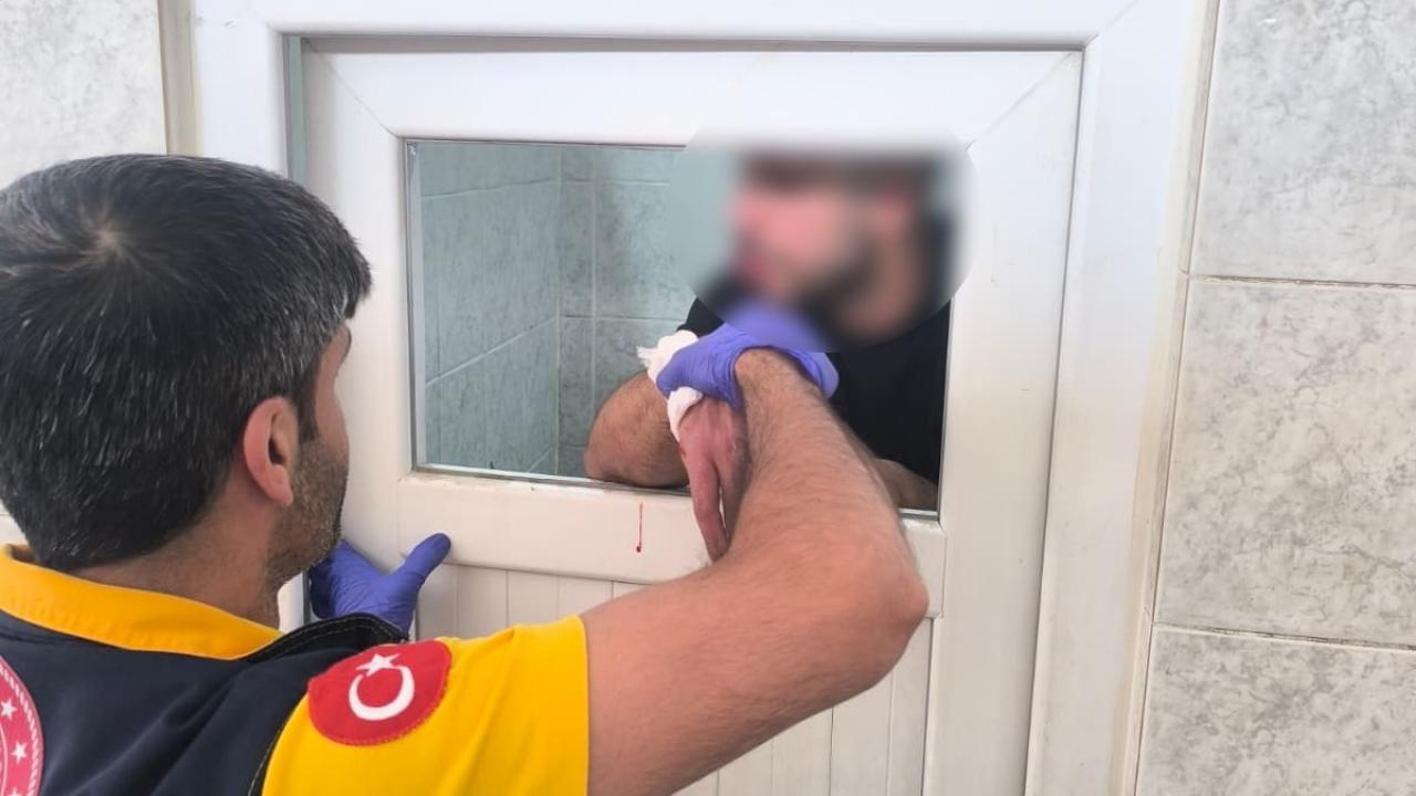 Ekipler kolu kanlar içerisinde camda asılı kalan şahsı uğraşlar sonucu kurtardı.