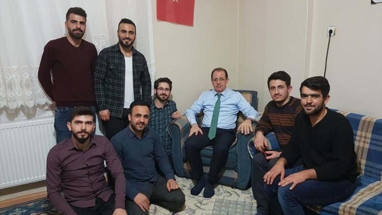 Öğrencileri Şeyhhayran Mahallesi'ndeki evlerinde ziyaret eden Coşkun, gençlerle sohbet etti ve çiğ köfte yedi.