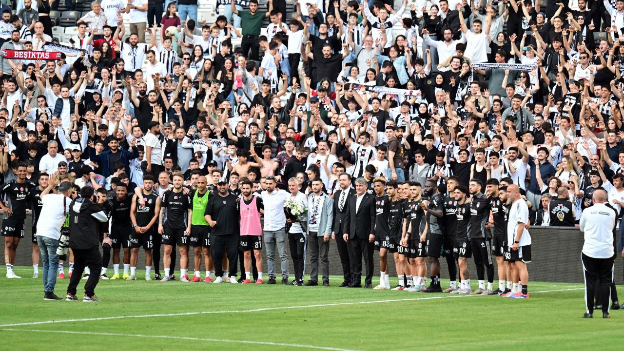 Başkan Adalı, çalışmanın sonunda siyah-beyazlı taraftarların çağrısıyla 'üçlü' çektirdi.