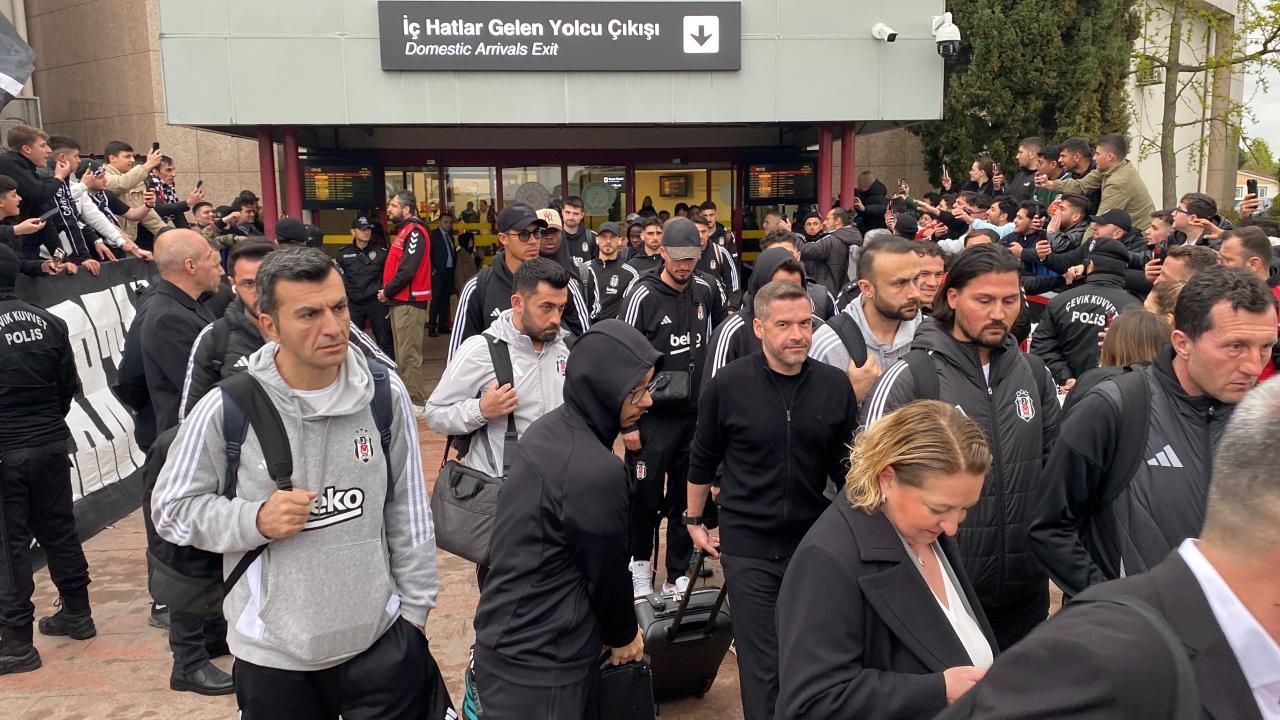 Güvenlik şeridinin dışında bulunan taraftarlar, tezahürat ve çiçeklerle karşıladığı futbolculara forma imzalattı. Futbolcular, taraftarların karşılamasının ardından takım otobüsüne binerek konaklayacakları otele doğru yola çıktı.