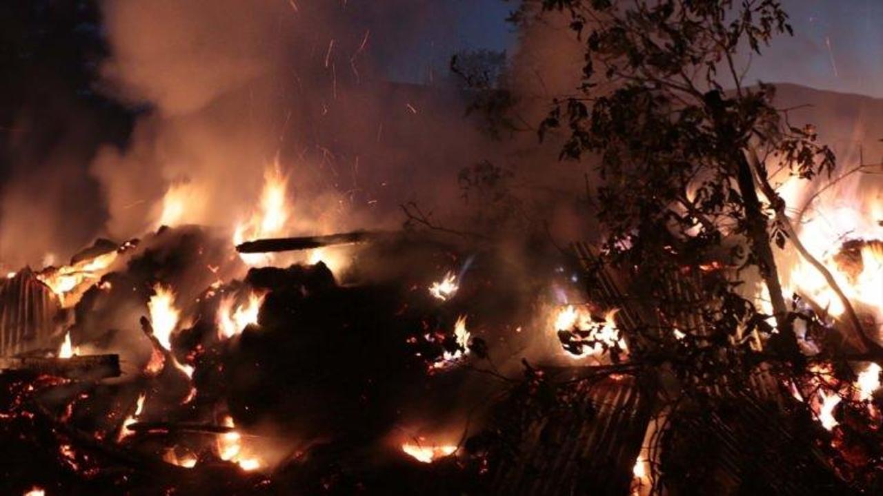 Özcan ve Bayram'a ait samanlıklar tamamen kullanılamaz hale gelirken samanlıkta bulunan 2 bin saman balyası yandı.