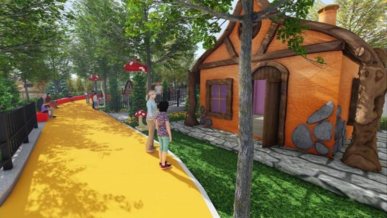Makarna ve yumurta ev ile dinozor giriş kapısının misafirlerini karşılayacağı alanda, hikaye kitapları, destan, masal ve çizgi filmlere konu olan Bremen Mızıkacıları, Hansel ve Gretel, Taş Devri, Ayı Yogi ve Bobo, Pinokyo, Nuhun Gemisi, Nasrettin Hoca, Deli Dumrul, Rapunzel, Şirinler, Karagöz ve Hacivat, Pamuk Prenses ve Yedi Cüceler, Kırmızı Başlıklı Kız, Keloğlan, Kül Kedisi ve Don Kişot'un dev heykelleri çocukların hayal dünyasına hitap edecek.