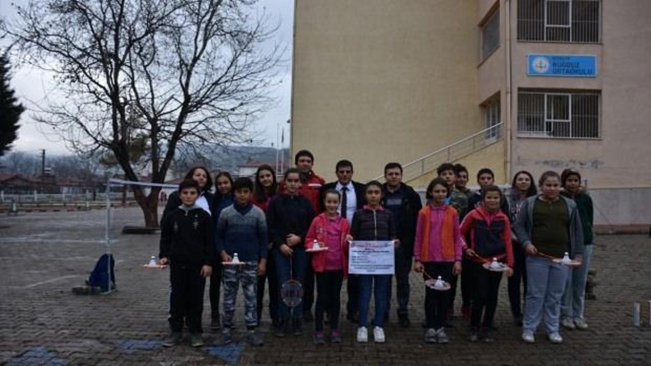 Burdur'da bir köy okulu öğrencilerine badminton sporu malzemesi dağıtıldı.