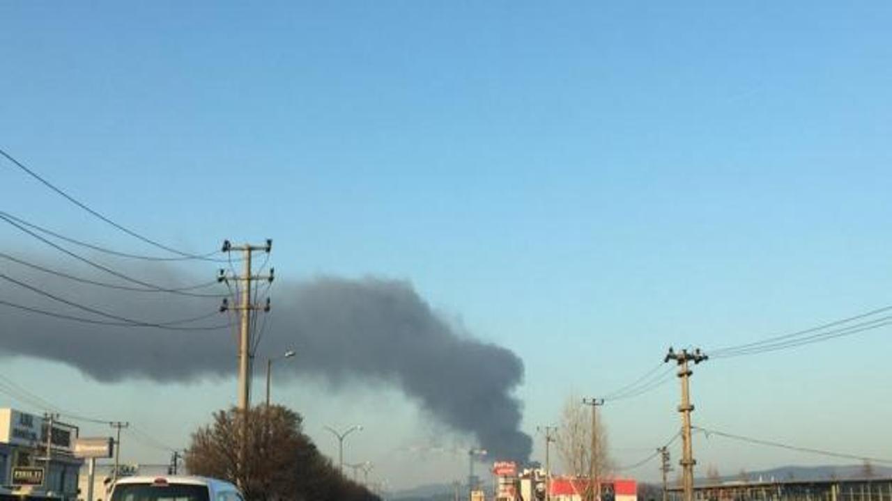 Bursa'da öğlen saatlerinde iplik fabrikasında çıkan yangın, itfaiye ekiplerinin müdahalesine rağmen sürüyor.