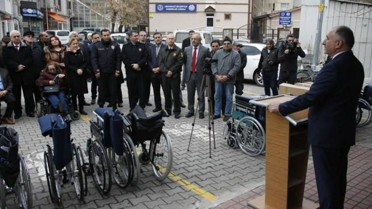 Konuşmaların ardından tekerlekli sandalyeler derneğin şube başkanı Emrullah Akçay'a teslim edildi.
