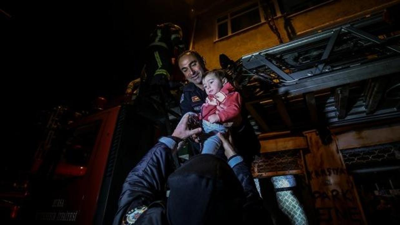 Olay yerine gelen ekipler, yangına müdahale ederken, binada mahsur kalan 15 kişi sepet yardımıyla çıkarıldı.