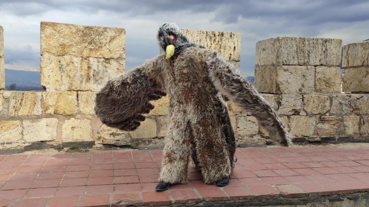 Tarihi surlarda şaşırtan görüntü! Kartal kostümü giyip kanat çırptı