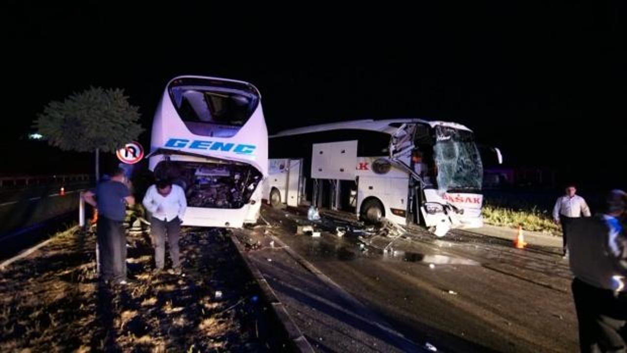 Kazada her iki otobüsteki yolculardan 13'ü yaralandı.