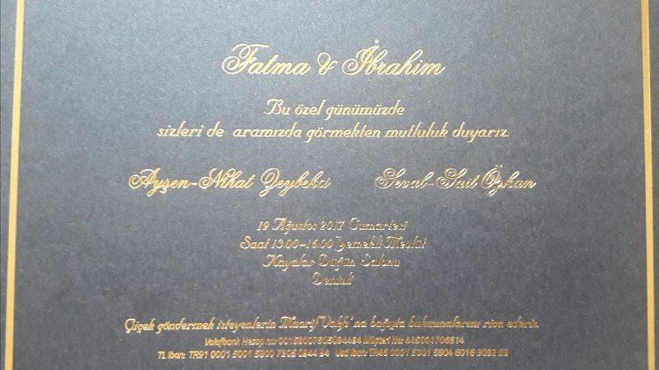 "Çiçek göndermek isteyenlerin Maarif Vakfı'na bağışta bulunmalarını rica ederiz." yazısı yer alan davetiyelerde, vakfın banka hesap numaralarına da yer verildi.