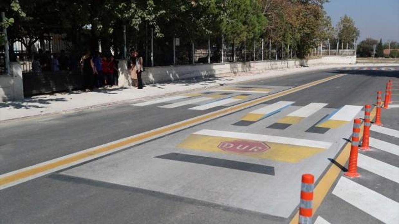Okul önünde 3 boyutlu yaya geçidi