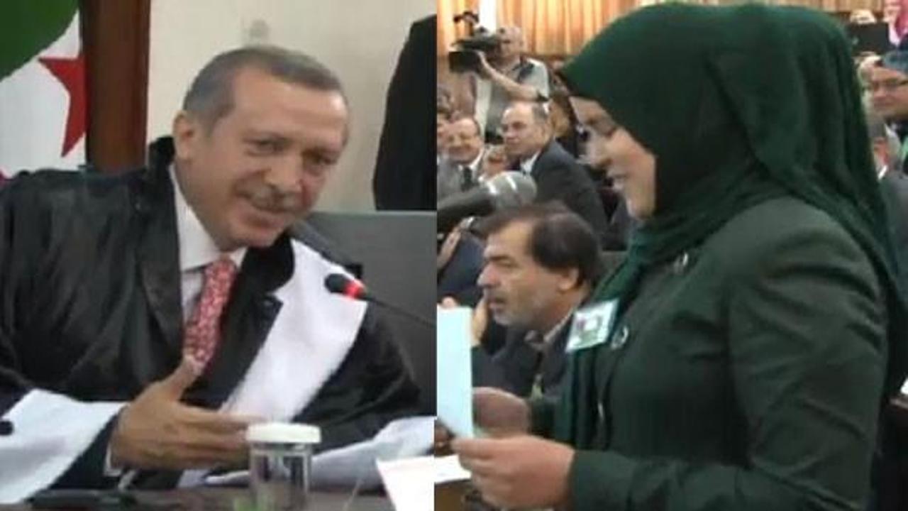 Cezayirli bir kız Cezayir Üniversitesi'nde bir programa katılan Başbakan Recep Tayyip Erdoğan'a sürpriz yaptı. Sürpriz karşısında çok sevinen Erdoğan: ''Beni memleketime götürdün'' dedi.