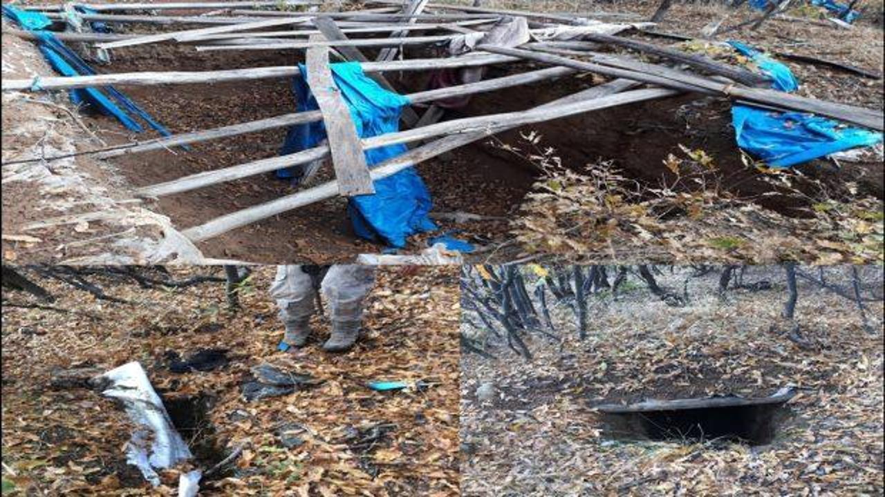 Aramada, toprağa gömülü 2 jelikan içerisinde büyük tüp, küçük tüp, 4'lü pil bloğu, çok sayıda yiyecek, giyim ve yaşam malzemesi ele geçirildi.