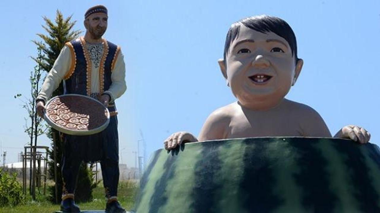 Diyarbakır Büyükşehir Belediyesi tarafından yerleştirilen ve tartışma konusu olan karpuz içinde çocuk ve kadayıf tepsisi taşıyan adam heykelleri kaldırıldı.