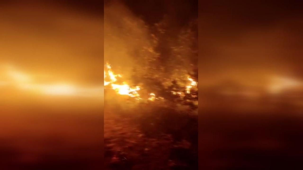 Rüzgarın etkisiyle geniş alana yayılan yangının söndürülmesi için yürütülen çalışmalara iki helikopter de destek veriyor.