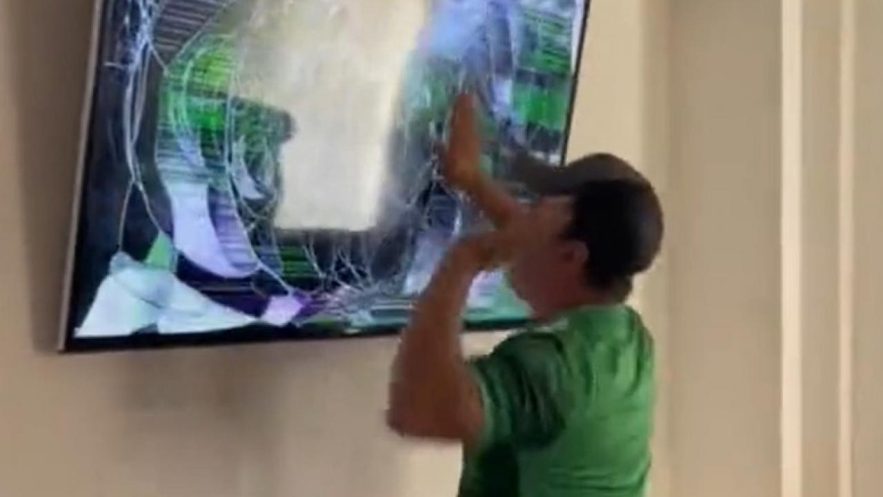 Meksikalı taraftar maçı izlerken sinirlenerek televizyonu kırdı.