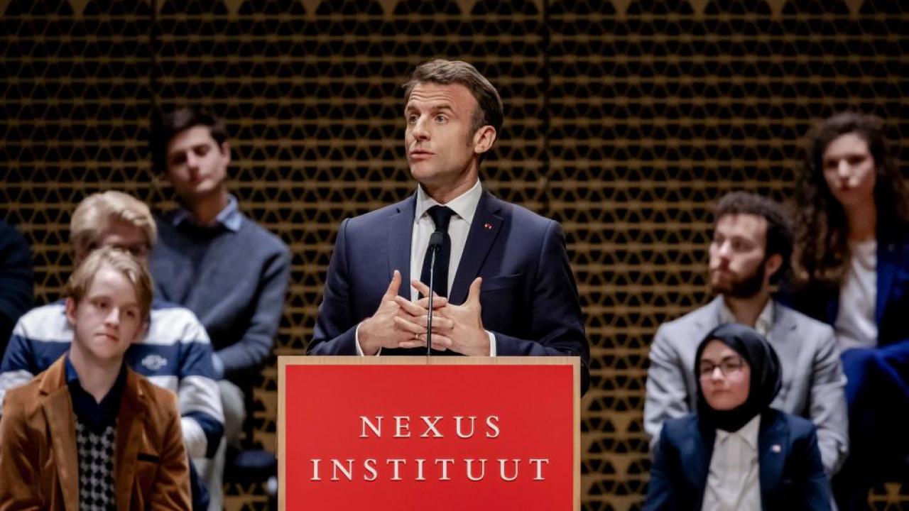 Fransa Cumhurbaşkanı Emmanuel Macron, Hollanda ziyareti kapsamında Nexus Enstitüsü’nde yaptığı konuşma sırasında protesto edildi.