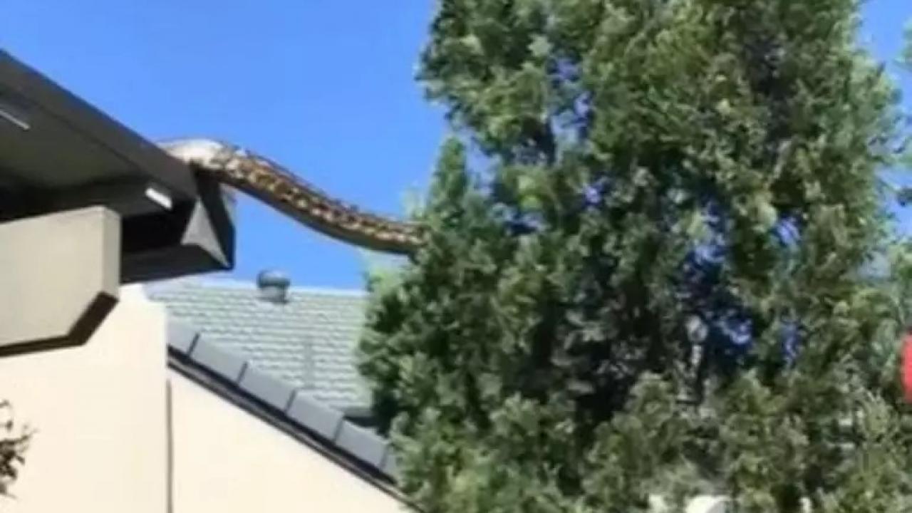 Avustralya'da bir evin çatısında asılı devasa piton korku dolu anlara sebep oldu.