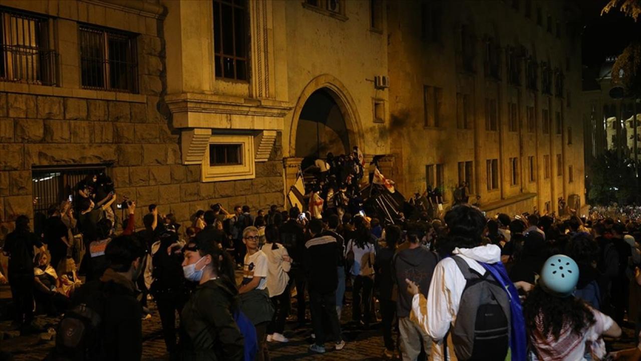 Başbakan Kobakhidze'nin kararına tepki gösteren binlerce kişi Tiflis'teki parlamento binasının önünde toplanarak protesto gösterisine başlamıştı.